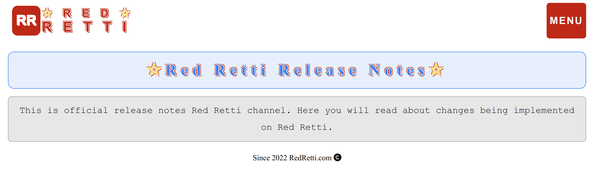 Red Retti Term of Use Red Retti Privacy Policy Red Retti Release Notes page address
